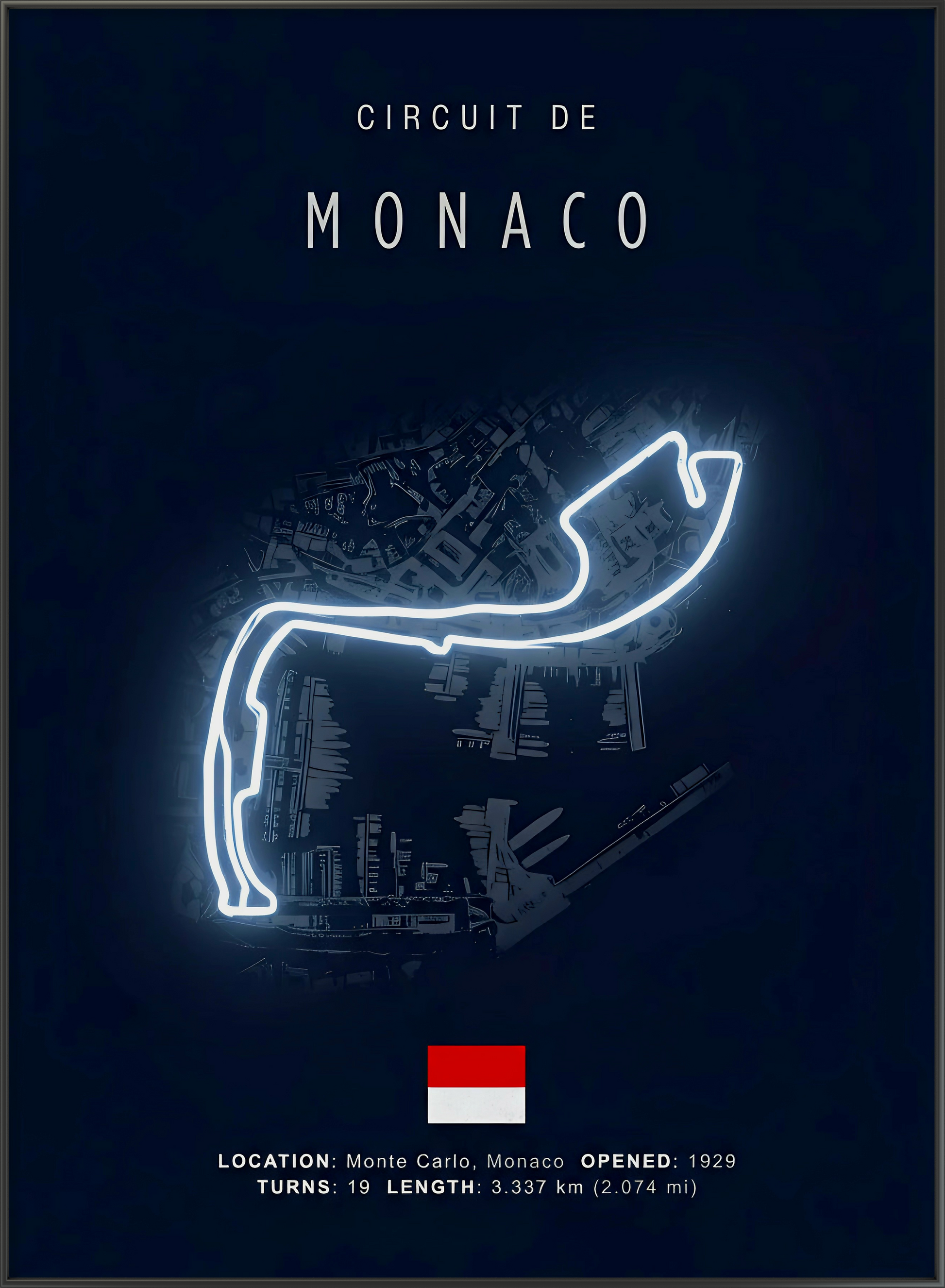 🏁 Handcrafted Circuit de Monaco Frame Celebrate the elegance and adrenaline of Formula 1 with this meticulously crafted tribute to the legendary Circuit de Monaco. This unique frame showcases the iconic street circuit layout in crisp white against a moody aerial backdrop of Monte Carlo, capturing the glamour and grit of one of motorsport’s most prestigious venues.